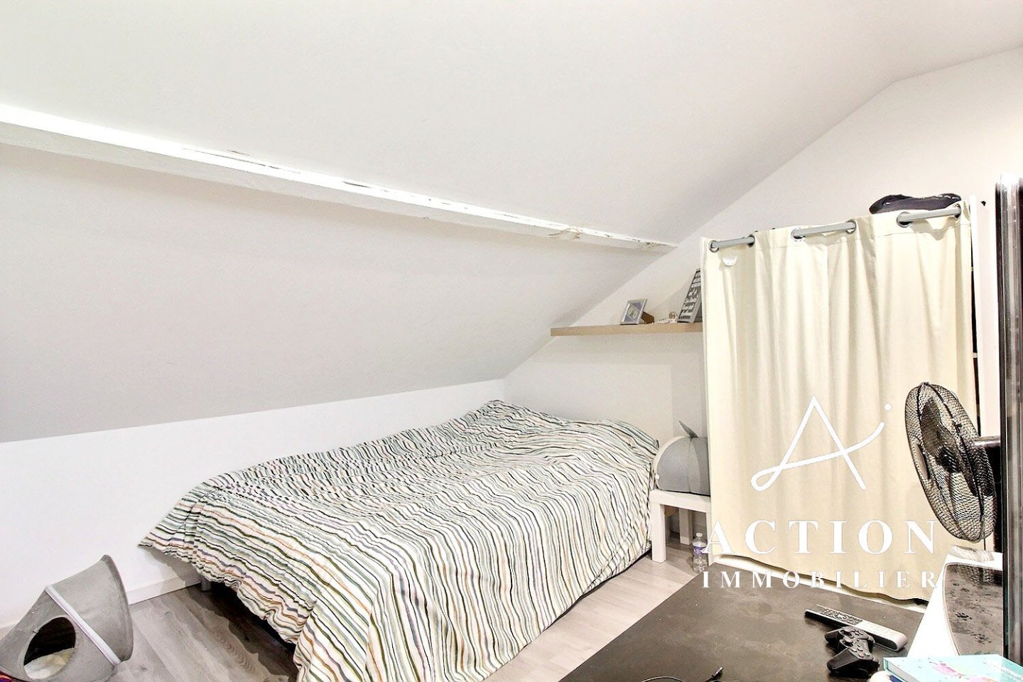 Le second étage dispose quant à lui d'une chambre mansardée de 19m² au sol .