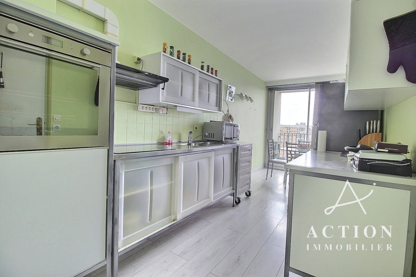 L'appartement dispose d'un séjour lumineux de 30 m² avec une grande cuisine équipée de 15m² suivi d'un cellier de 4.3m². Le séjour et la cuisine ont un accès direct au balcon.