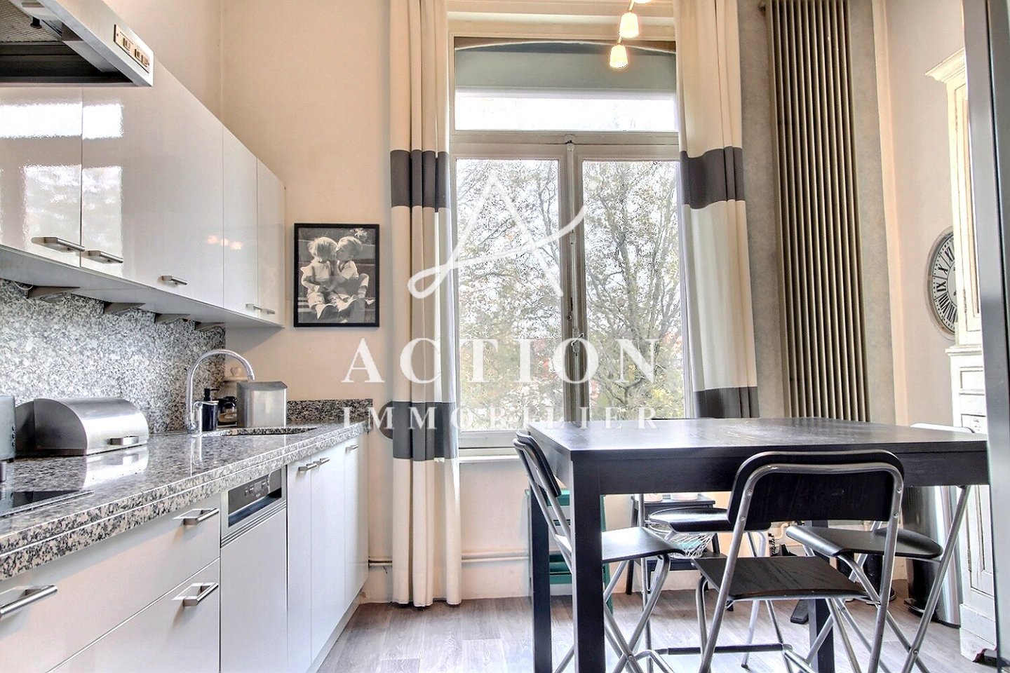 - Charme Bourgeois : les espaces généreux, de grandes hauteurs sous plafond et un superbe parquet d'époque, créent une atmosphère chaleureuse et authentique
